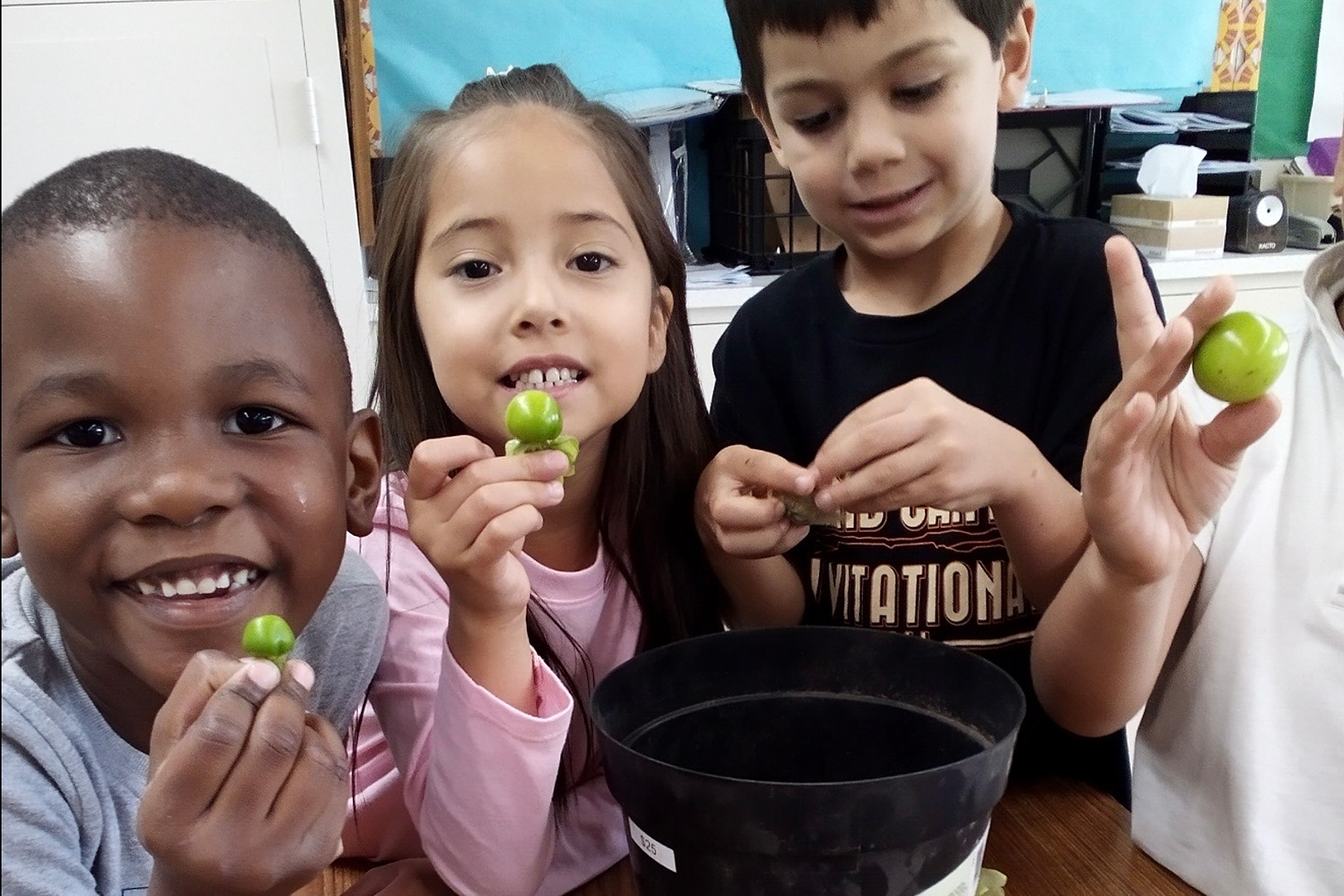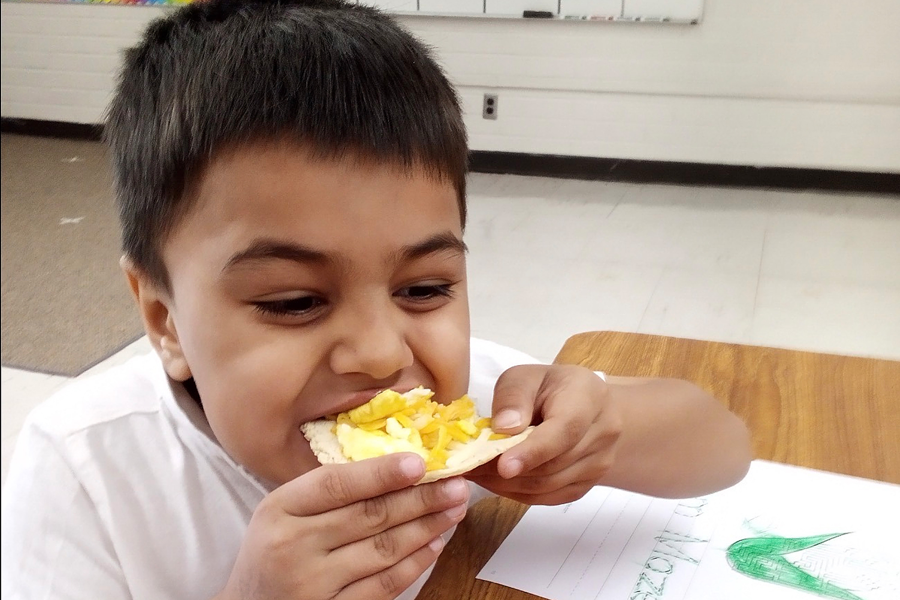 The Ecology and Garden elective classes are making breakfast tacos, but not just any breakfast tacos, this is garden to table cuisine here at Tully Elementary! Students are involved in each aspect of growing and preparing delicious recipes, such as planting seeds or plant starts, watering, amending soil, composting, harvesting, feeding the chickens, and preparing and cooking the recipes. A few of the ingredients include handmade corn tortillas, eggs from our chickens, and tomatillos and onions from the garden.